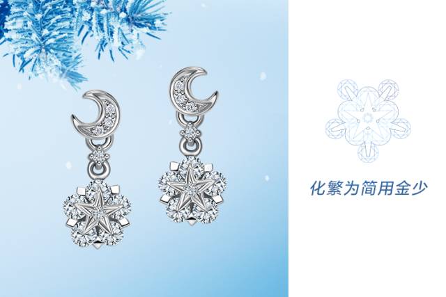 港福珠寶《雪花鉆》原創專利臻品系列,采用雪花鑲專利鑲嵌工藝,鉆石與18K金的完美結合,隱秘復合式鑲嵌工藝,呈現雪花真實立體效果,重現大自然神奇之美,凝鑄零下28攝氏度最完美形態的雪花,將瞬間之美永恒傳述。